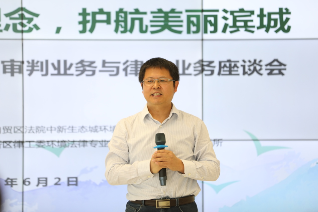 座谈会上,中新生态城环境资源审判庭曲健庭长介绍了环境资源中心法庭设置及案件审理情况。作为京津冀地区唯一专业的环资审判庭,曲健庭长希望各方能够以此次座谈为新起点,在环境资源纠纷解决中形成强大合力,共同打造美丽滨城的绿色品牌。