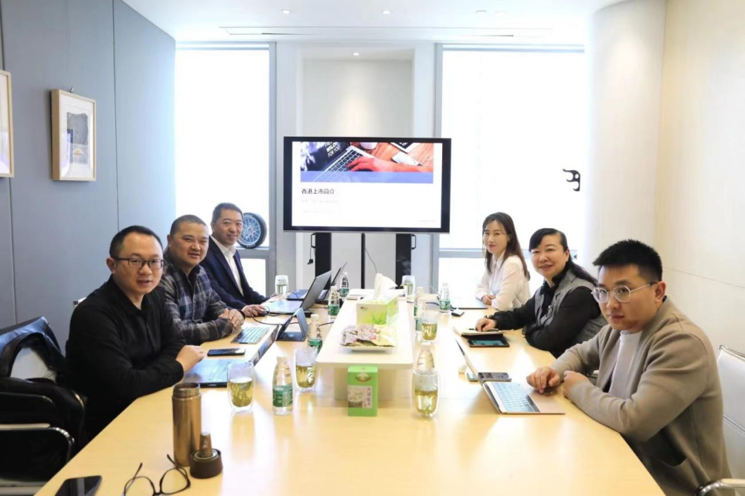 范大鹏律师(左三)、高然律师(右三)接待贵州蕴诚律师事务所,交流企业境内外上市业务