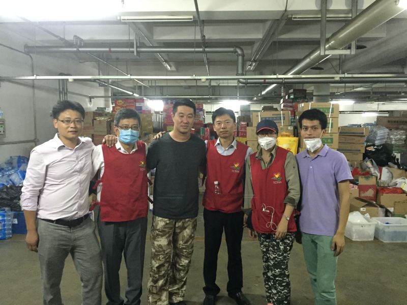 8月14日晚,泰达图书馆地下车库的天津开发区援助物资接收站有条不紊的接收、整理和派送捐助物资,金诺赖如星律师也参加了志愿者行动。